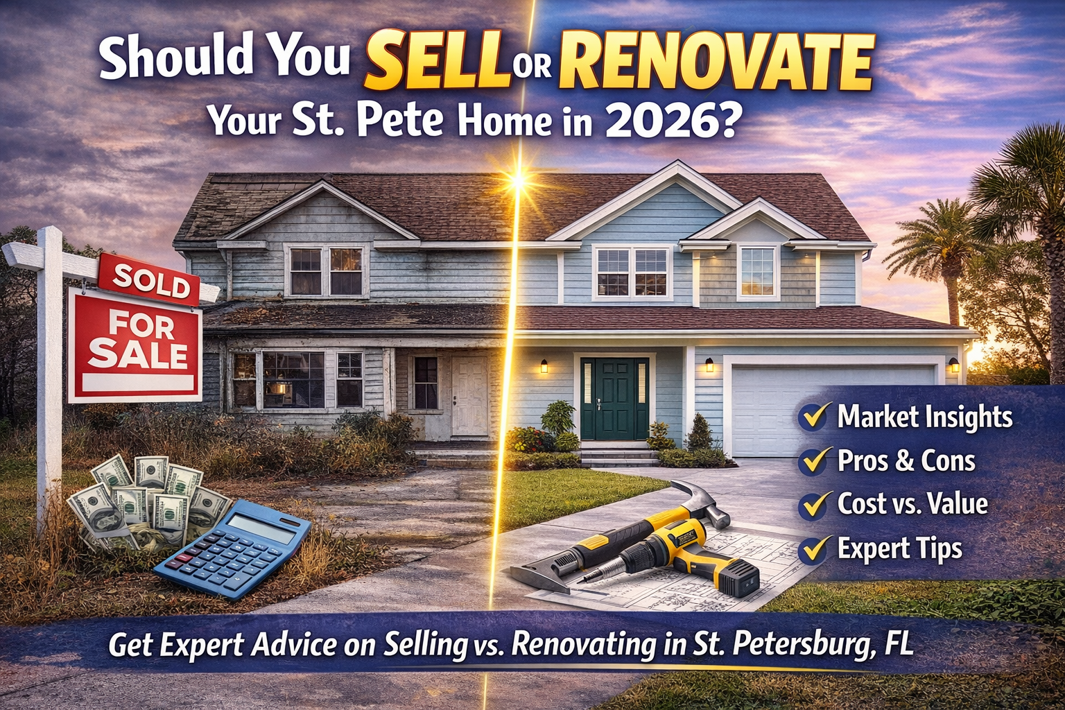 This guide breaks down exactly how to decide whether to sell or renovate your St. Pete home in 2026, based on your property, your location, and current market conditions.